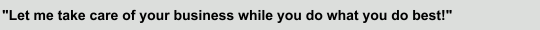Not sure how Outsourcing works? Call today for your free consultation so that you too can "Let me take care of your office so you can do what you do best!"